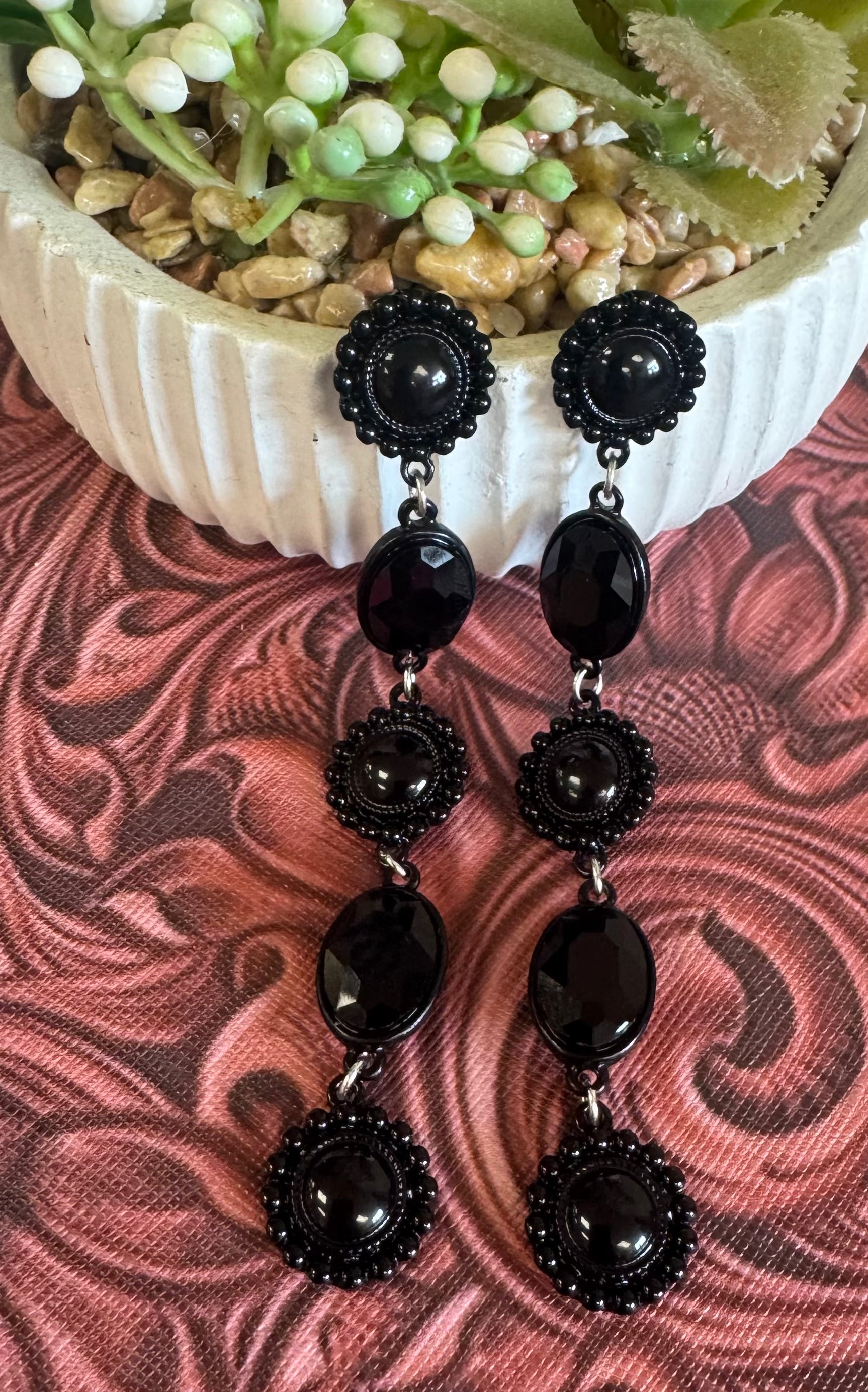 Black Rhinestone Dangle Earrings