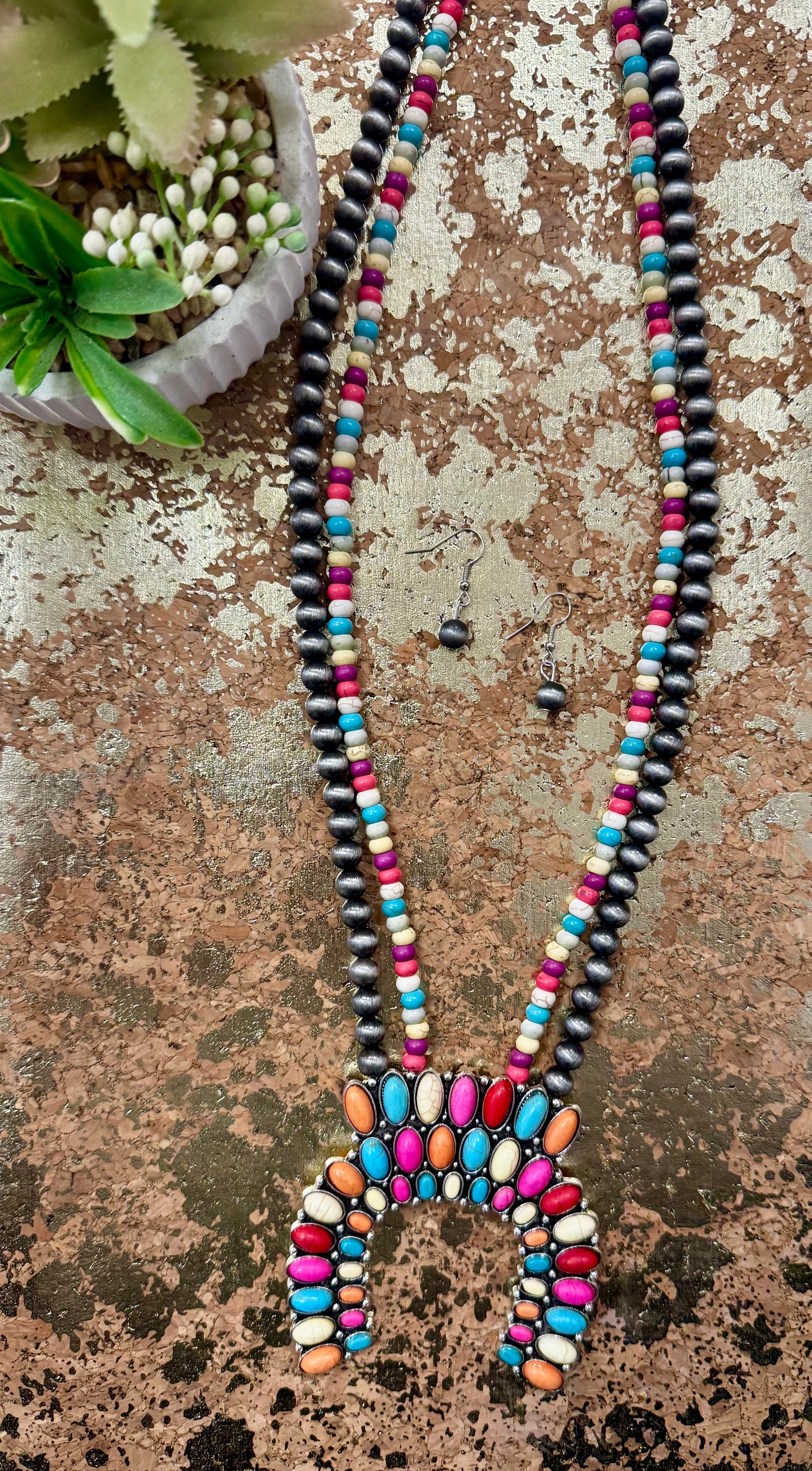 Multi Color Squash Blossom Necklace