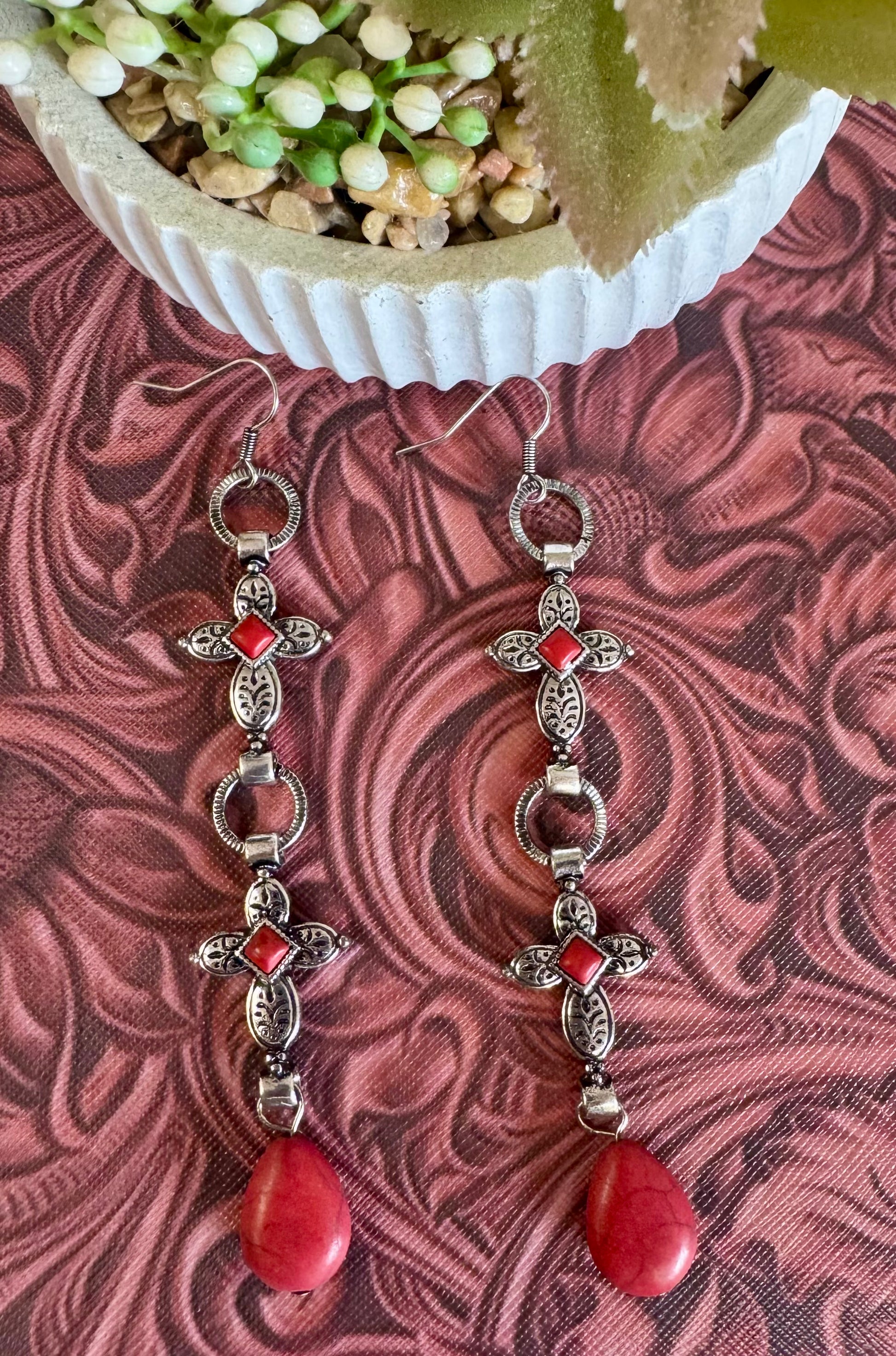 Red Cross Dangle Earrings